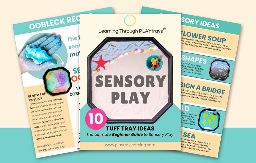 The Learning Through PLAYtrays® Guidebook is your go-to resource for sensory play inspiration — filled with recipes, photo tray setups, and practical tips.